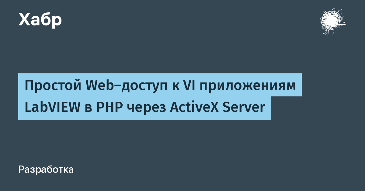 Для LabVIEW на данный момент момент существует несколько способов публикации виртуальных приборов в Web, требующих разного уровня знаний и предоставляющих разные возможности. В этой статье я не собираюсь их описывать, но хочу познакомить вас с нестандартным использованием встроенного в LabVIEW сервера ActiveX/COM для организации Web доступа к VI, а также управления самой средой LabVIEW. Хотя ActiveX/COM уже старая, но еще продолжающая жить в Windows технология, но именно через встроенный ActiveX сервер можно легко организовать управление LabVIEW и VI приборами, в том числе через Web.