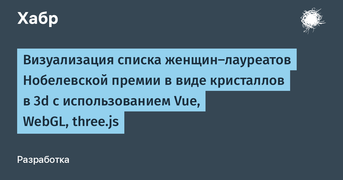 После этого я продумала другие детали: размер кристаллов должен отражать влияние женщины — количество ссылок на ее страницу в Википедии. Число граней на кристалле будет сопоставлено с количеством источников в нижней части ее страницы (поскольку она «многогранна»), а цвет будет определяться категорией премии. Единственное, что мне пока было непонятно, — это как расположить кристаллы. Я долго думала, что мне надо просто выложить их в 2-х измерениях по x / y и заставить читателя прокручивать их.
