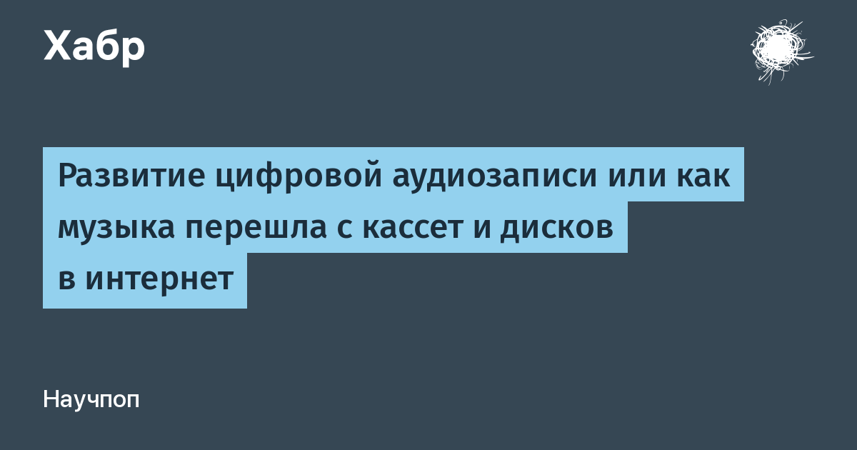 Зарождение цифрового звука из которого позднее и получилась музыка в цифровом формате, началось с того, что в 1928 году Гарри Найквист определил требуемую полосу линии связи для передачи импульсного сигнала.