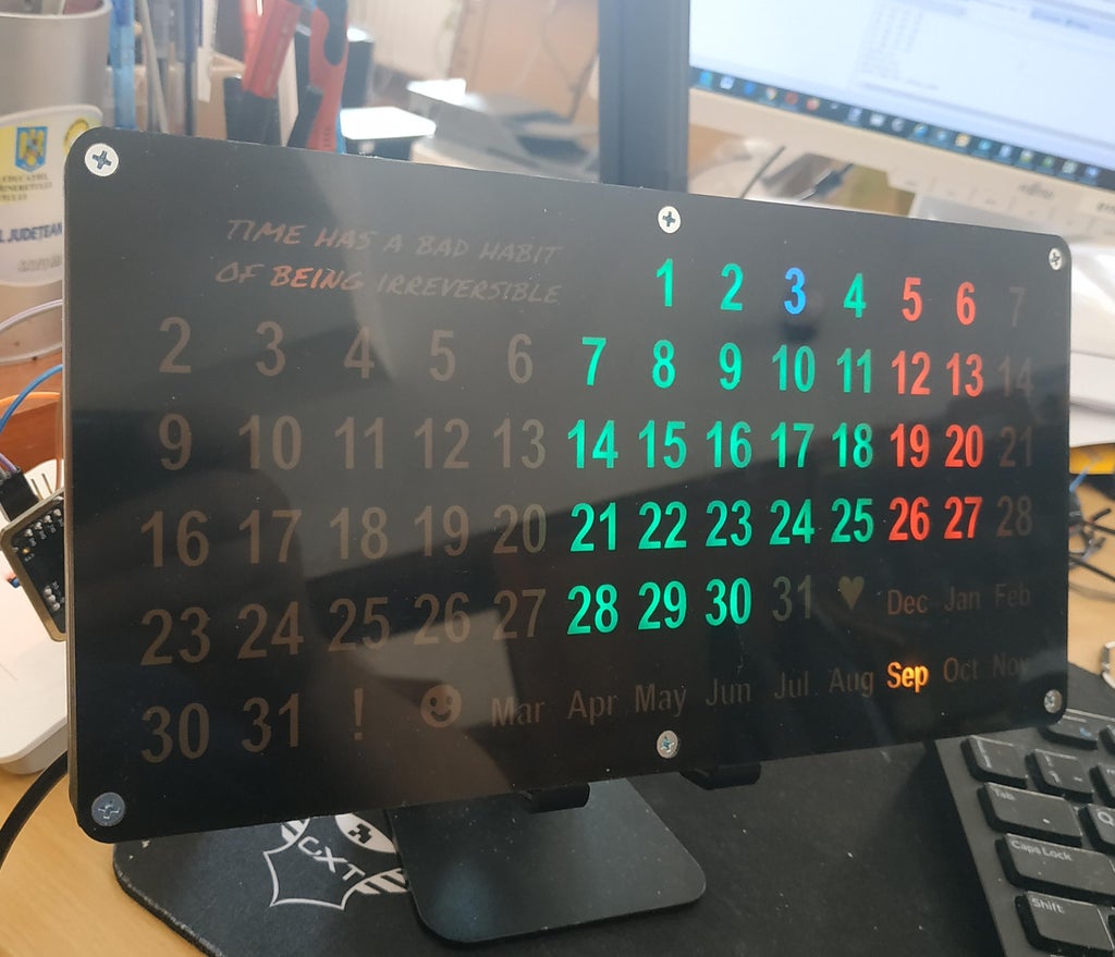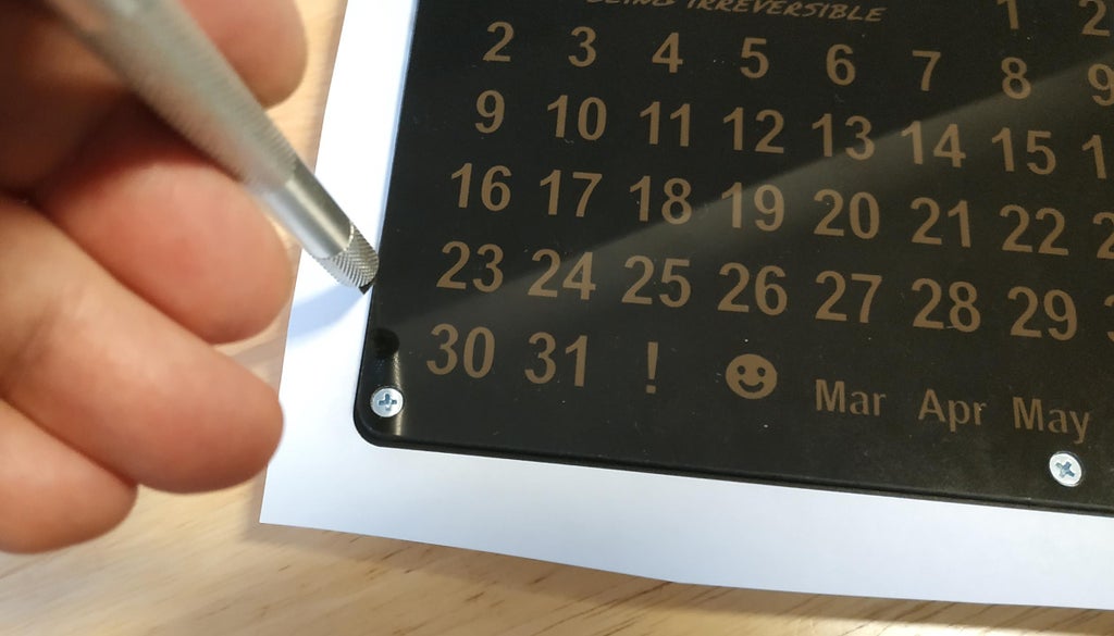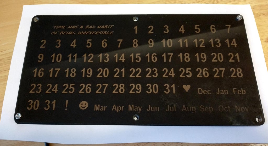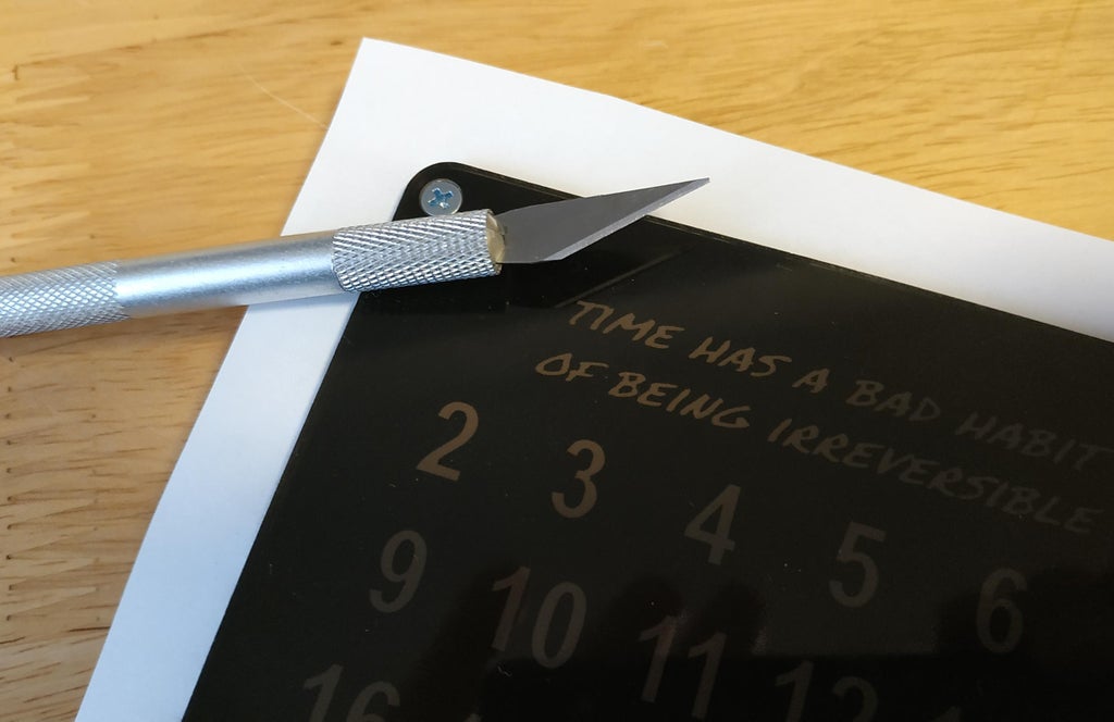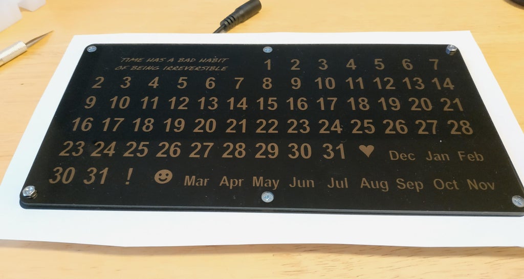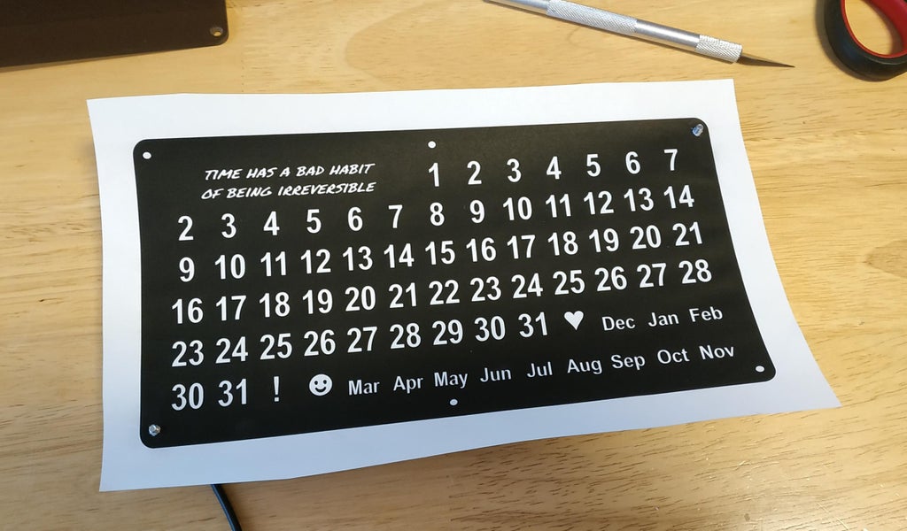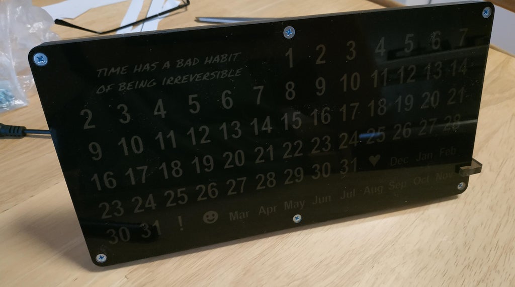 Я сделал календарь из оргстекла, потому что оно было у меня под рукой. Ничто не мешает вам сделать решётку и заднюю часть из другого пластика или дерева – только передняя часть должна быть прозрачной или полупрозрачной.