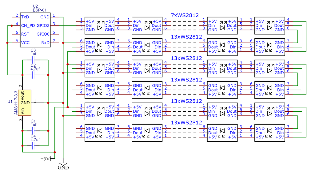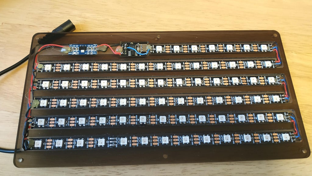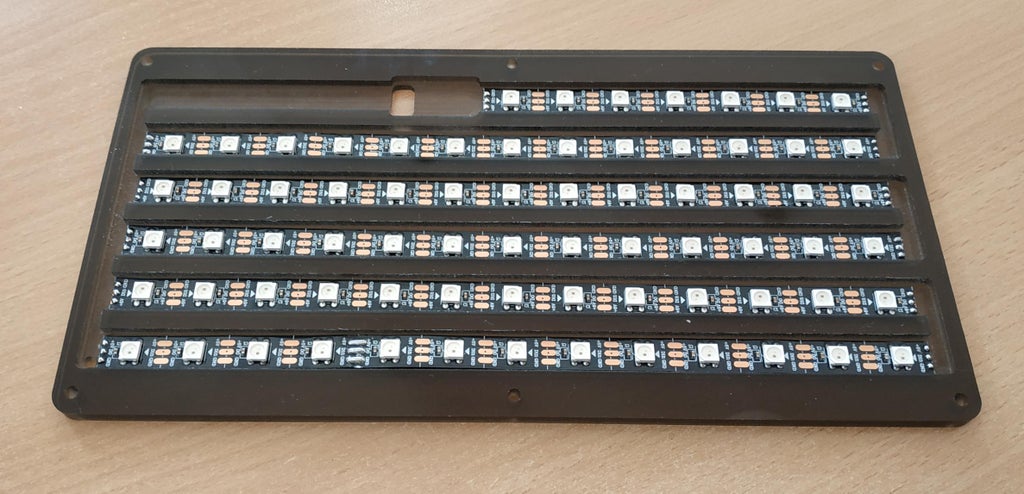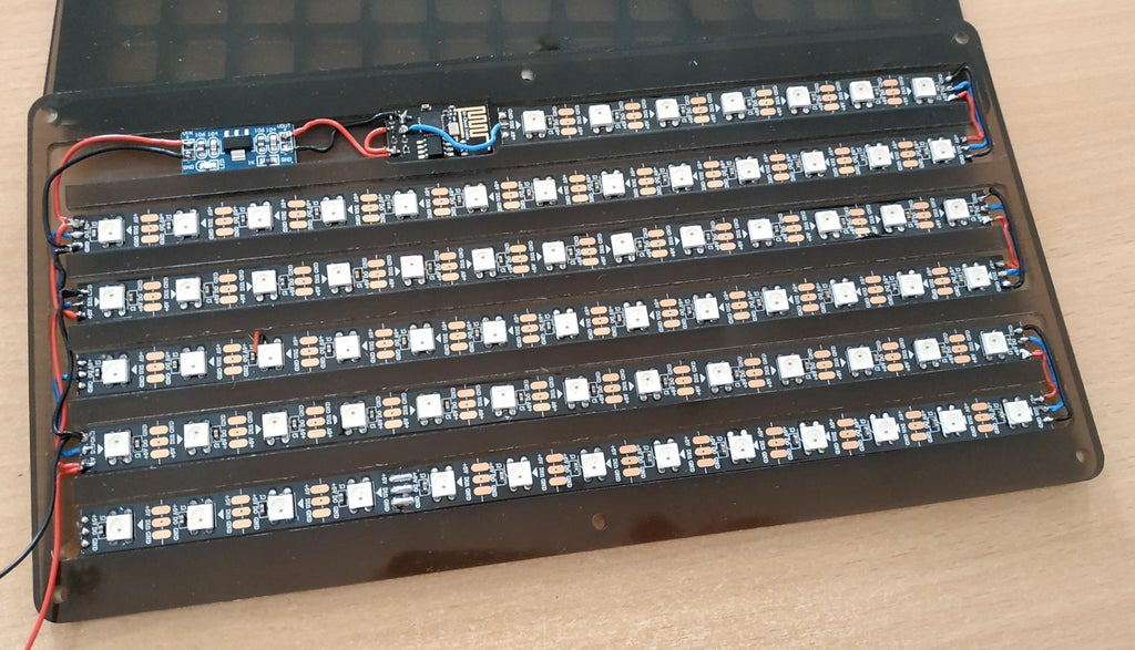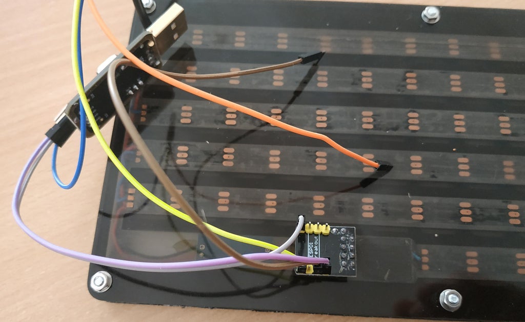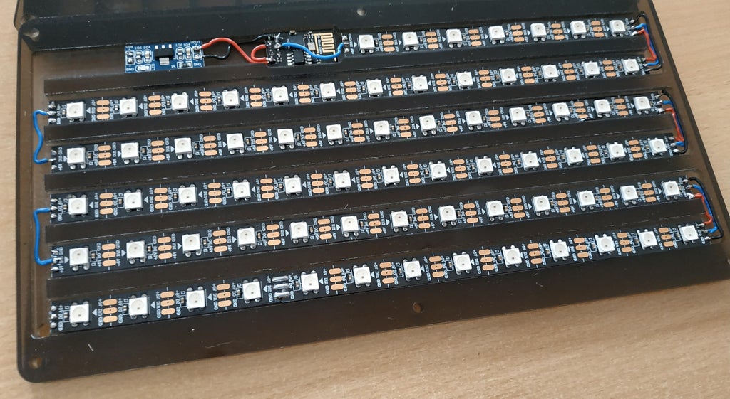 Размер может показаться слишком большим – если хотите его уменьшить, можно использовать светодиодные полоски со 120 светодиодами на метр, или даже две светодиодные матрицы 8х8.