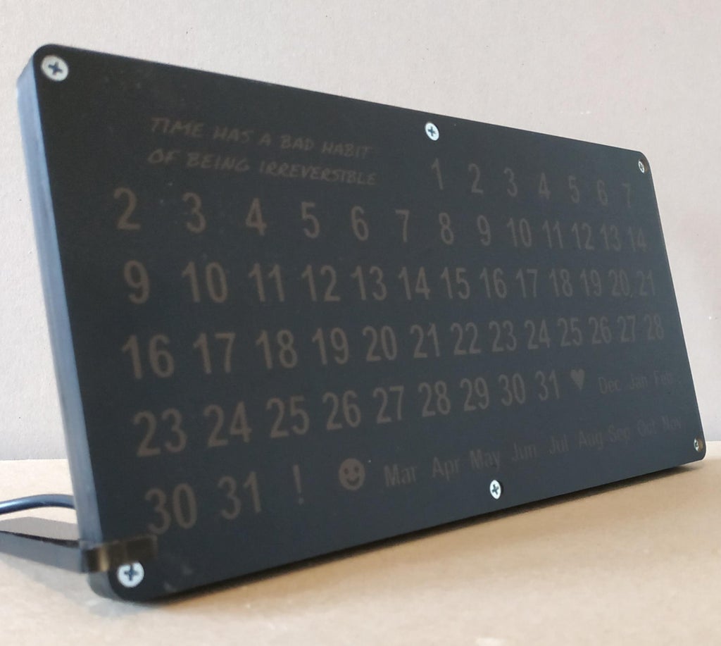 Проектов календарей существуют тысячи, но мне всегда нравились вечные календари. Мне всегда была близка идея календаря, который можно использовать повторно, чтобы не менять офисный календарь каждый год. Минус таких календарей в том, что многие из них большие, отнимающие пространство штуковины, которые сложно читать и интерпретировать. Или бывают ещё кубики с днями недели, или кубики с месяцами, которые надо постоянно обновлять. Ещё бывают календари из кусочков (деревянных, металлических, магнитных) с числами от 1 до 31, которые нужно подбирать и размещать на специальной панели.