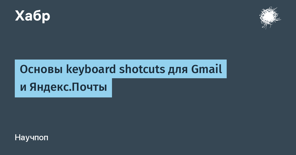Перемещение по почтовому ящику происходит за счет так называемых Combo-keys. Например, G (go) потом A — All mail. G потом I — Inbox. И так далее. Или, например, выделение писем происходит с кнопкой * (на ноутбучной клавиатуре звездочка нажимается только как shift+8). Итак, * потом A — выделить все письма, * потом N — убрать выделение всех писем.