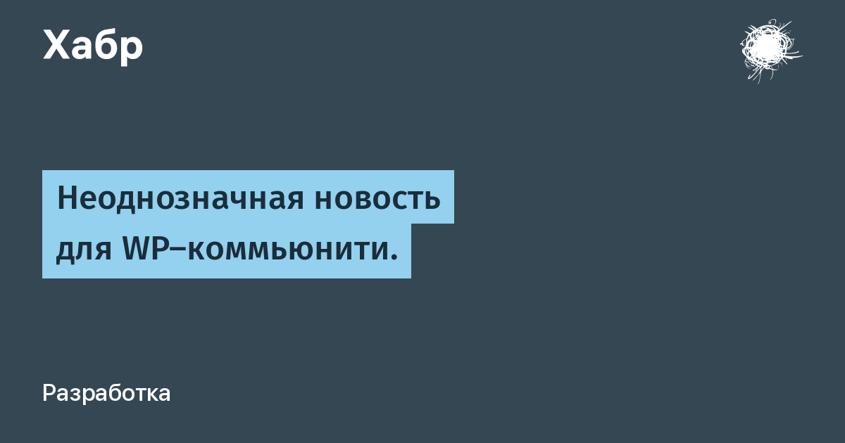 @motto3 ноя 2006 в 11:55Неоднозначная новость для WP-коммьюнити.Время на прочтение1 минОхват и читатели1KWordPress * Гуру хотел быть с вами, но не осилил.Теги:MithgolХабы:WordPress
