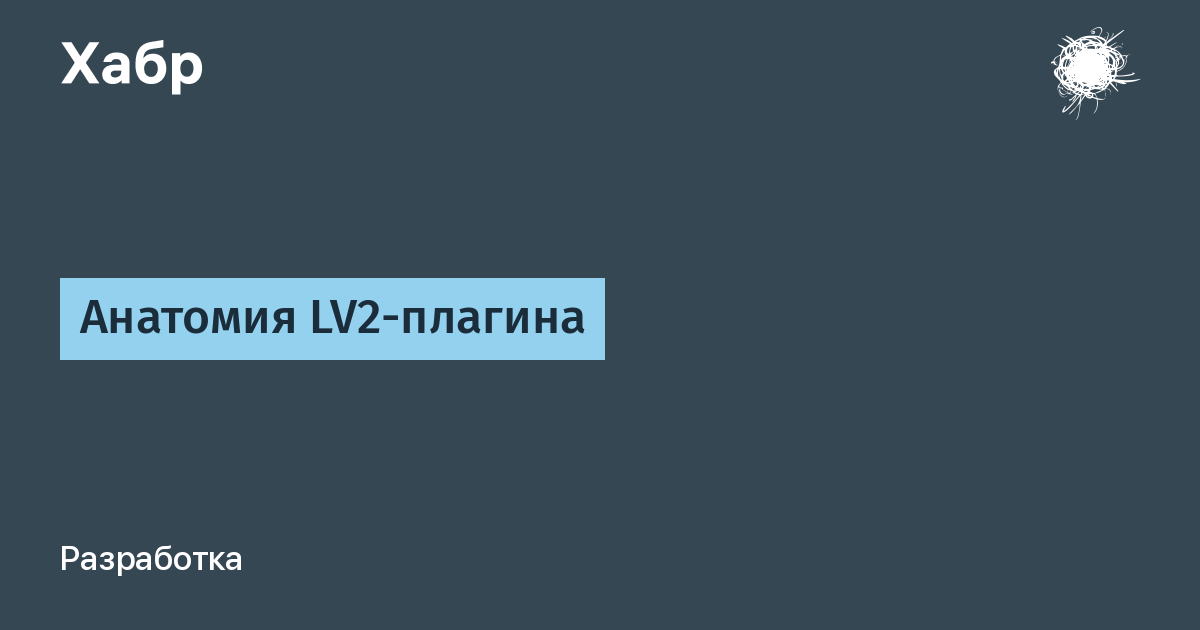 rdfs:seeAlso <example.ttl> .В первых двух строках определяются префиксы, которые затем будут использоваться в описании. Далее идёт выбранный URI и краткое описание плагина. В строке 5 указывается группа, которой принадлежит плагин (полный список групп можно найти на странице документации https://lv2plug.in/ns/lv2core/lv2core.html). Две последних строки указывают на бинарный файл, который будет загружаться хостом и расширенный файл описания example.ttl, который и содержит основные данные.