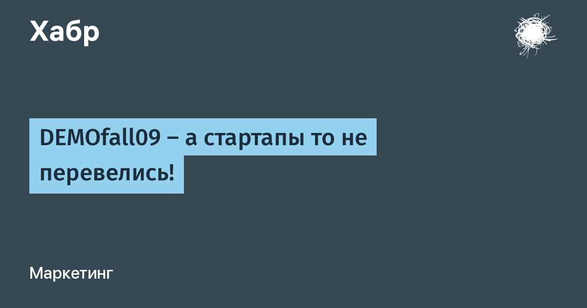 Как то в этой суете и проблемах забылось, что традиционная конференция стартапов DEMO, несмотря на кризис (и просто страхи, не столько кризиса, сколько муть в умах), прошла по расписанию в начале этого года, и, более того, нельзя сказать, что безуспешно. Конечно, проектов было немного меньше, но это вполне объясняется различными факторами. Но пусть меньше, да лучше — думаю, вы согласитесь. Далее я кратко расскажу, какие проекты были представлены и в чем их основная суть. Более детально вы сможете посмотреть на официальном сайте, благо все выступления доступны для просмотра онлайн. Кстати, жизнь то продолжается, и уже идет подготовка к весенней конференции, которая пройдет 21 — 23 сентября в Сан Диего (США), возможно, ваш стартап как раз заслуживает, чтобы туда поехать?А теперь детальнее о проектах.