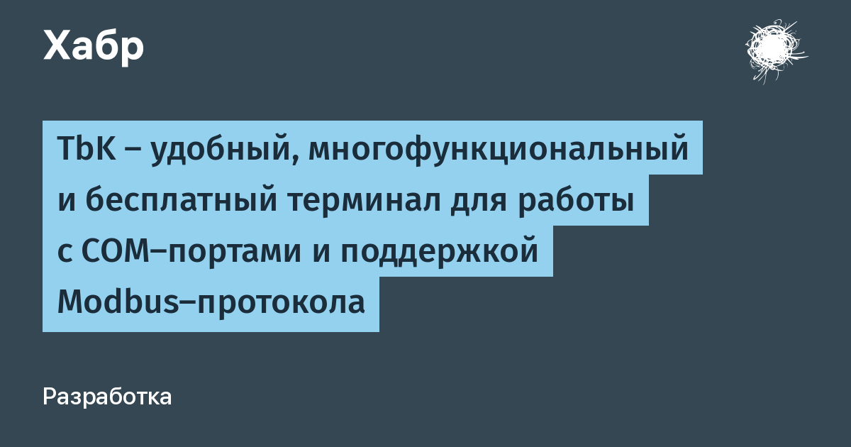 Здравствуйте, уважаемые хабровчане! Я хотел написать просто комментарий к статье "Программное обеспечение для тестирования и наладки устройств и сетей на базе MODBUS", однако для вновь зарегистрированных пользователей сайт не даёт это сделать для "не свежих" публикаций. Поэтому пишу это в виде публикации, что бы хоть каким-либо образом донести информацию. Суть этого небольшого поста - представить вниманию читателей новый терминал для работы с COM-портами, который, возможно, многим придётся по душе. А теперь - непосредственно сам пост:
