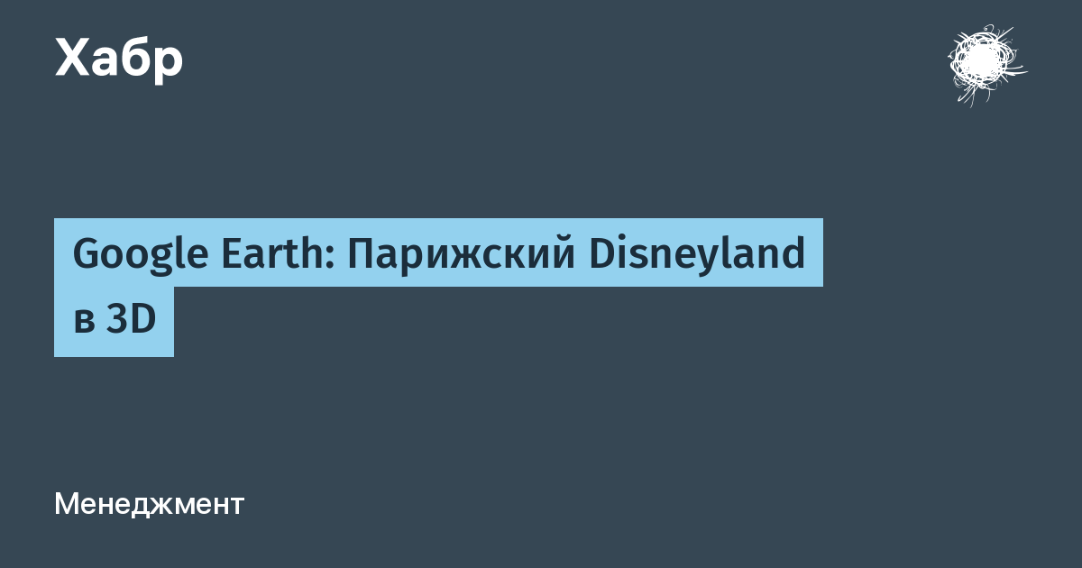 Disneyland в Париже теперь доступен для посещения в Google Earth. Воссоздан парк целиком, включая деревья, горки, указатели, герои мультфильмов и даже Disney Studios. Чтобы посетить виртуальный парк, включите слой «3D Buildings» и используйте в поиске ключевое слово «Disneyland Paris».