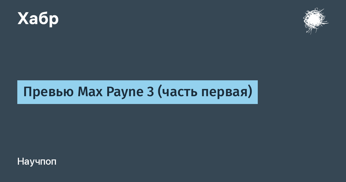 Уважаемые хаброчане! Представляю вашему вниманию первую часть перевода превью Max Payne 3 из июльского номера Game Informer.Лысый человек с бородой, на обложке журнала, едва похож на героя с которым мы пережили события двух частей этой успешной игры. Он сильно постарел после трагических событий Max Payne 2, он окреп и обзавёлся новыми шрамами. Если бы не логотип на обложке, вы едва бы его узнали.