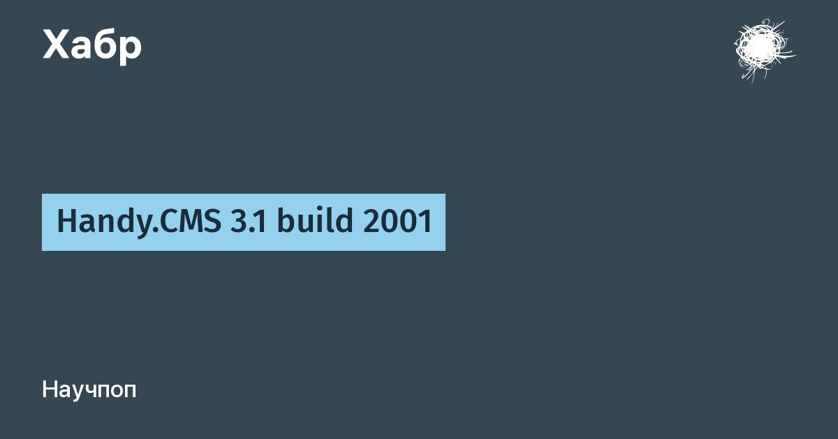 Вышел новый билд системы управления сайтом Handy.CMS. Среди значительных изменений: добавлена возможность создания тем для сайтов. Кроме того, в данный билд добавлен первый бесплатный дизайн для Handy.CMS*. Другие изменения системы под катом.