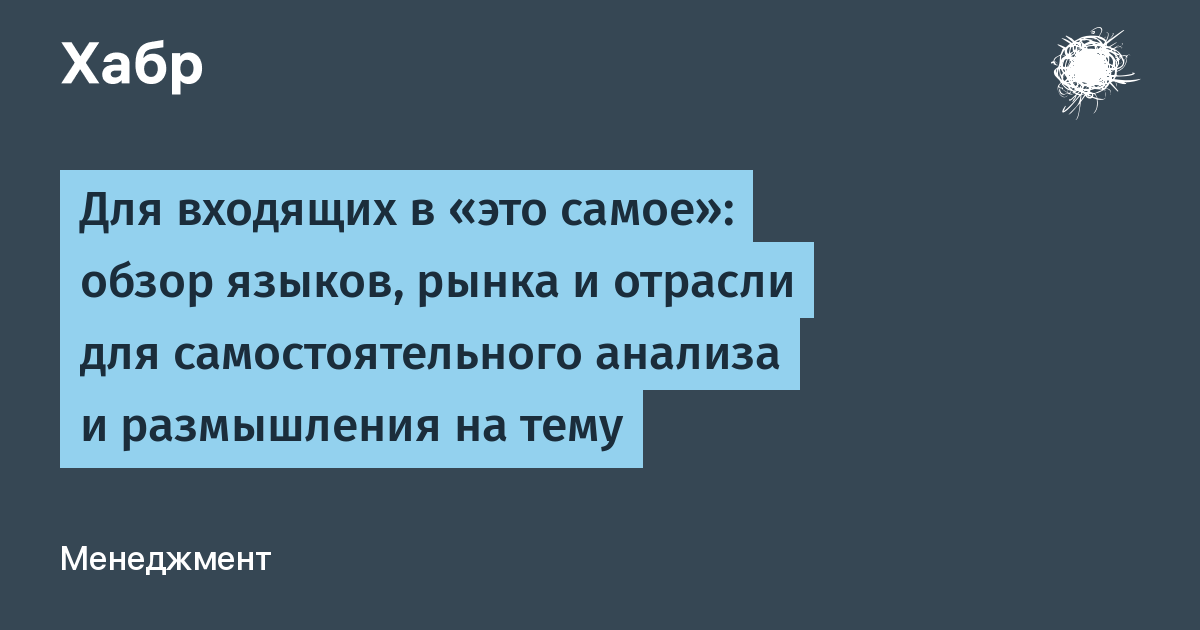 В этой публикации я дам обзор отрасли на текущий момент, структурированный для самостоятельного поиска ответов, чтобы начать ориентироваться в рынке. Цель: послать сюда за анализом своих склонностей, возможностей и перспектив, дать некоторый инсайд об отрасли. Взгляд дан преимущественно со стороны разработки: кто, как и какой формирует спрос на рынке труда.