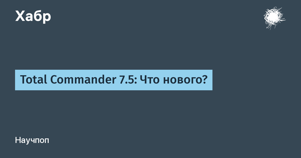 «Что нового?» — традиционная статья от русскоязычного сообщества Total Commander, выходящая после появления очередной версии этого файлового менеджера. В этот раз первыми ознакомиться со статьёй предлагаю хабралюдям.