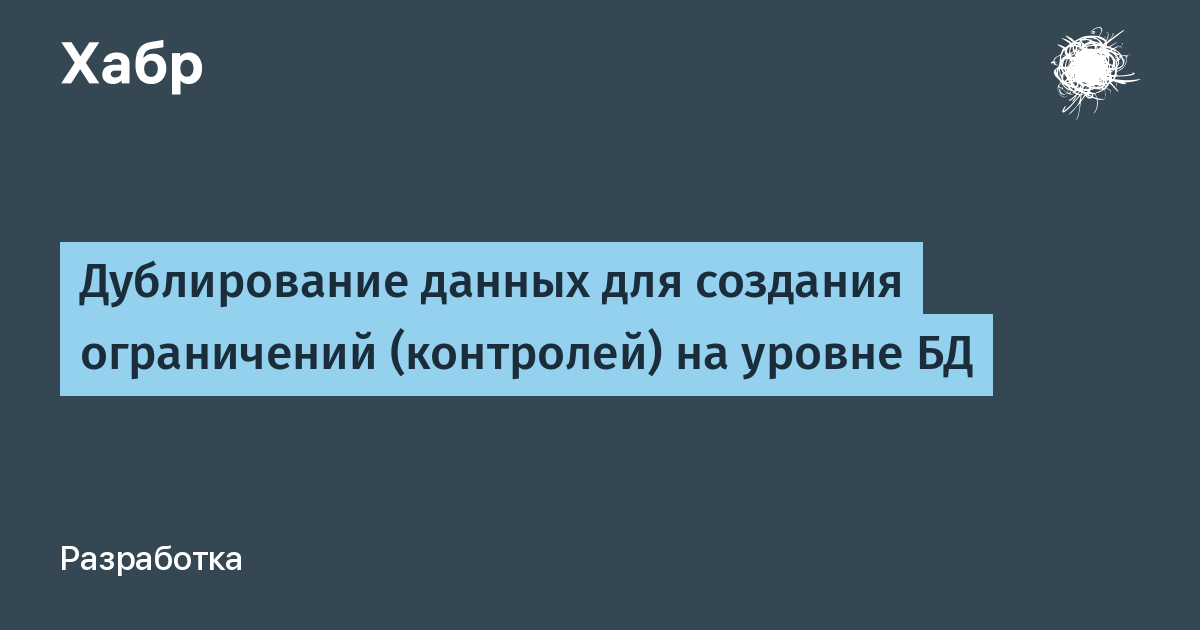 Рассмотрим пример, когда ограничения не просто применяются, а реализуют дополнительную логику с помощью дублирования некоторых данных.