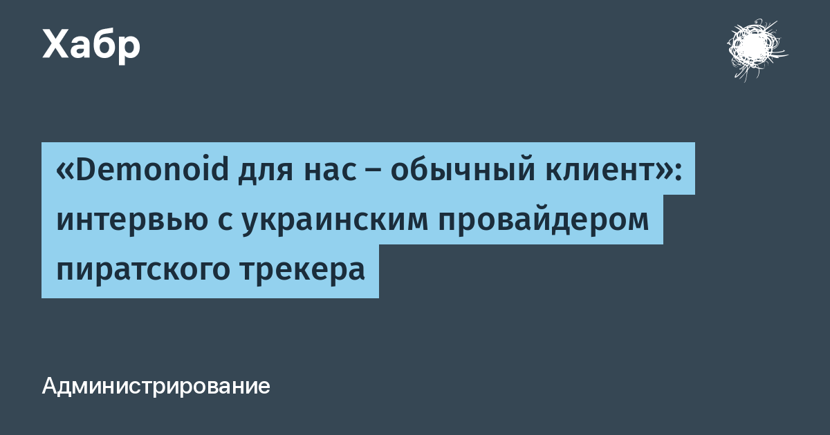 Недавно весь интернет гудел о переезде The Pirate Bay в Украину. И хоть слухи не подтвердились, выяснилось, что у нас размещается другой известный на весь мир трекер – Demonoid. О том, каково это – хостить один из крупнейших пиратских сайтов современности, мне рассказал Пётр Власенко, коммерческий директор компании Colocall.