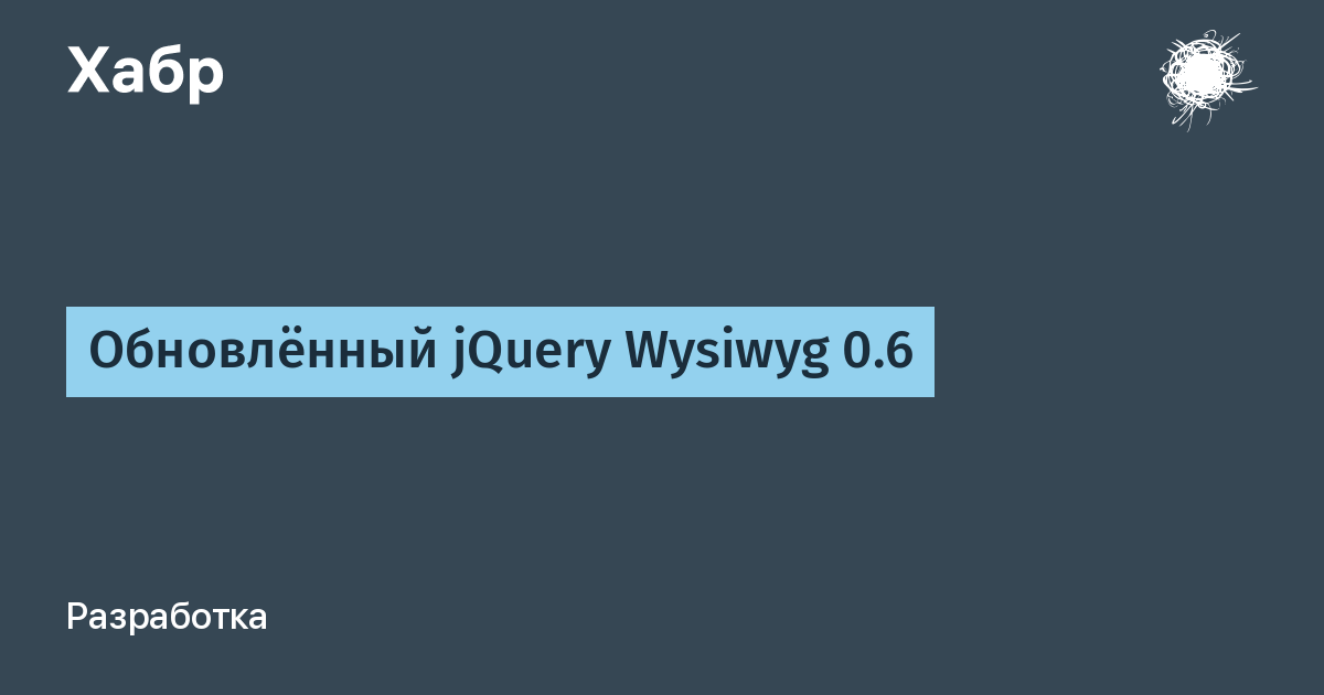 Рад сообщить, что обновлённый jQuery Wysiwyg 0.6 вышел в свет.