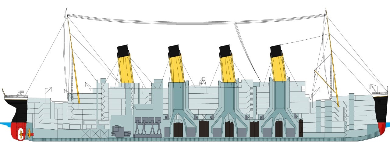Тоже обратил внимание на ошибку с перегородками, они не были герметичны сверху, по достижению определенного уровня вода переливалась в соседнюю перегородку и так по цепочке, именно поэтому корабль и затонул, а не болтался, как поплавок!