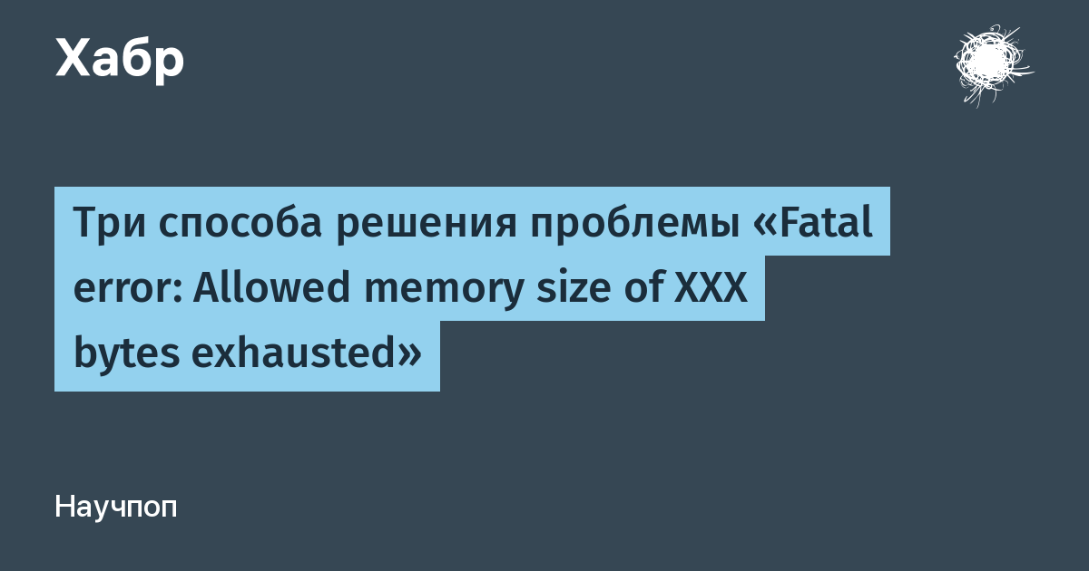 Когда вашему скрипту не хватает оперативной памяти для его выполнения (точнее он не укладывается в объём, который ему разрешён), возникает ошибка «Allowed memory size of XXX bytes exhausted (tried to allocate YYY bytes)».
