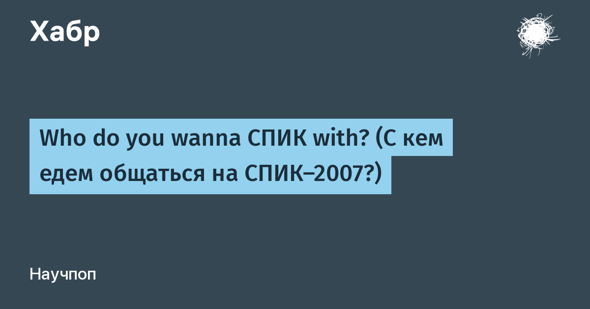 Вопрос тем, кто приедет (или хотел бы поехать) на СПИК (www.sp-ik.ru) как участник или докладчик: с кем бы вы хотели пообщаться лично, какие персоны вас интересуют?