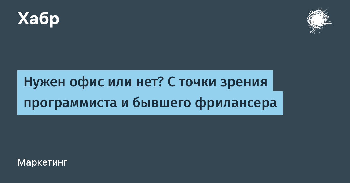 Итак, коллеги, я готов поделиться впечатлениями о длительном воздержании об аренде своего офиса. Как обычно — к сути. Сначала я хочу рассмотреть теории о том, нужен офис предпринимателю/фрилансеру или таки — нет. «Теории», подчеркиваю, означают, что все данные «обрабатываются» без практического опыта. А после — мой практический опыт, из-за чего я пост и написал. Насколько я могу понять, вопрос работы в собственном (важно!) офисе обычно оставался не раскрытым. Все посты о создании своих фирм считали этот этап незначительным. Но для кого-то это важно — знать всё в подробностях, например, как для меня. Хотелось бы понимать, что нас ждет, перед тем, как это делать.