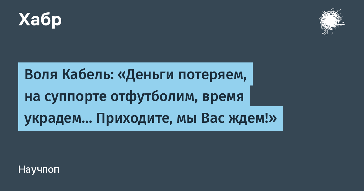 Про Воля Кабель в инете не мало написано, этот пост всего лишь капля в океане — моя пятничная история про потерянные волей деньги, отключении от инета и как я с ними бодался, и перебодал-ли…