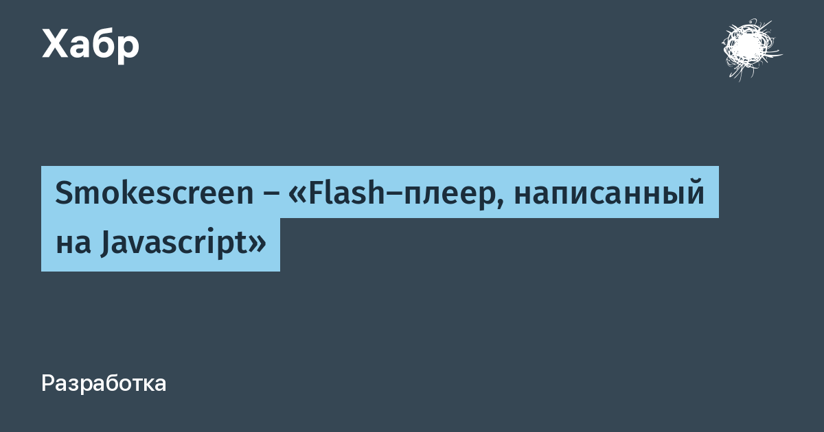 Smokescreen Крис�� Смоака (Chris Smoak), «флэш-плеер написанный на JavaScript», это невероятная вещь. Он работает полностью в окне браузера, считывает файлы SWF, распаковывает их (с помощью чистого JS), извлекает изображения и встроенные аудио-файлы, упаковывает их с помощью base64 и вставляет в HTML-страницу как data:uri, векторная графика собирается в анимированный SVG. В отладчике (Chrome Web Inspector) вы можете увидеть, как SVG изменяется в реальном времени во время проигрывания демо. Smokescreen даже реализует собственный интерпретатор байт-кода ActionScript. [...] Единственное, что меня беспокоит, это производительность библиотеки — она имеет объем 175 KB и более 8000 строк кода, что может привести к проблемам на маломощных мобильных устройствах.