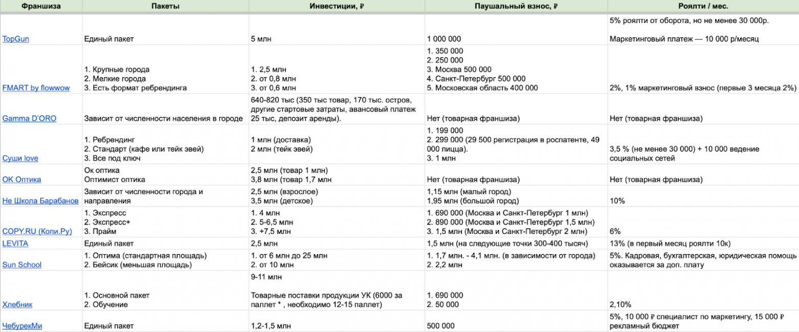 Честные франшизы: