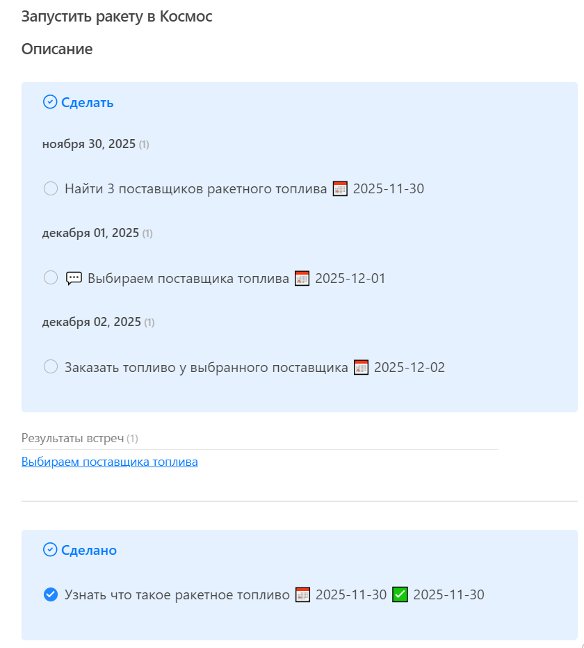 Сюда автоматически стягиваются все задачи, где в поле "Проект" я выбрал этот проект.