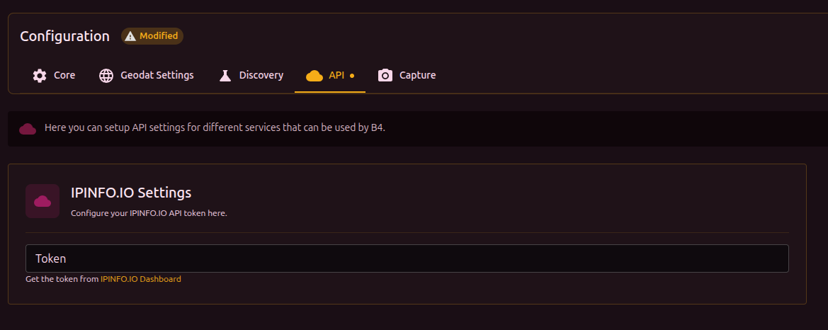 Settings → API → IPINFO.IO