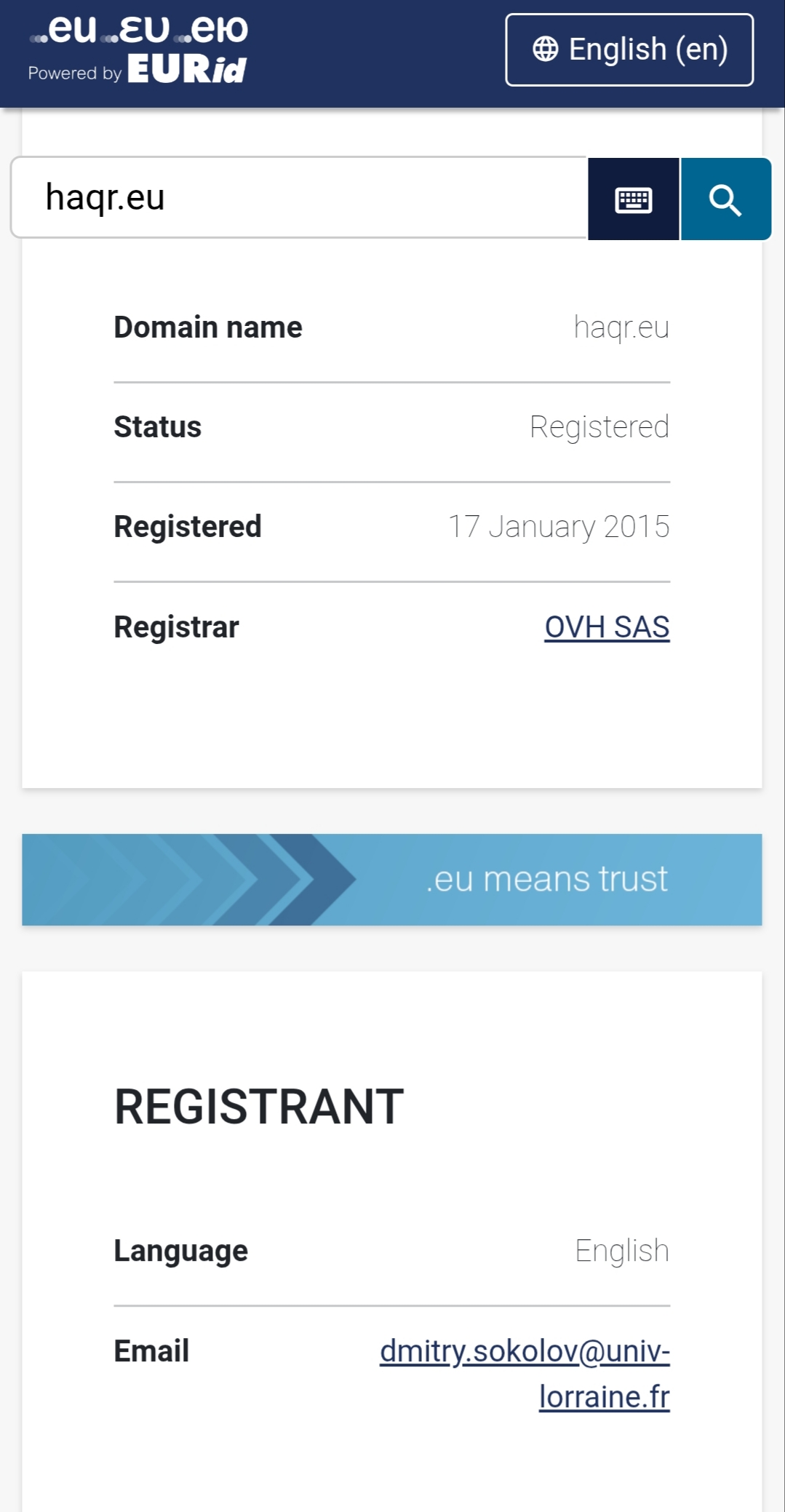 Во-вторых, вы одновременно с вашей первой публикацией регистрируете домен haqr.eu (да, сразу в зоне .eu). Вы прекрасно осознавали что, зачем и при помощи чего вы делаете.