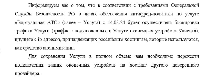 Ростелеком веселая контора. Заблокировла IP в дата-центре где крутится Asterisk организации входящей в КИИ по требованию ФСБ, чем создала инцидент о котором организация входящаяя в список КИИ обязана сообщить в ФСБ. Ладно бы заранее написали официальное письмо с темой "ата-та", но нет прислали какую-то фигню похожую на спам-инфо, и сейчас упорно мажутся.