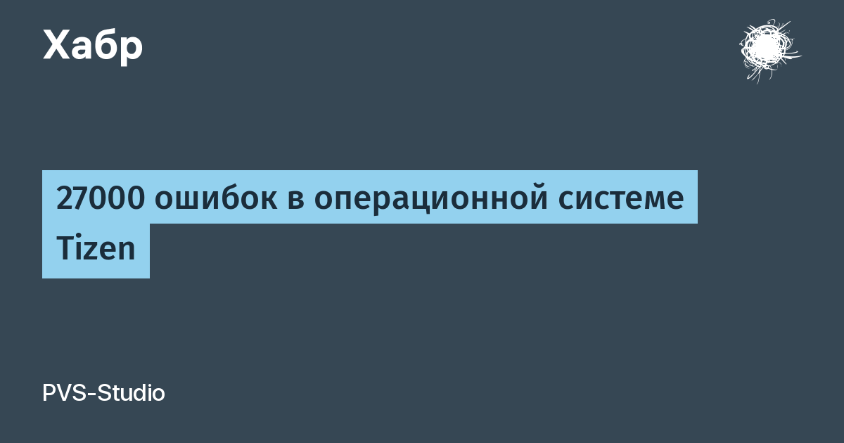 Если хотите поделиться этой статьей с англоязычной аудиторией, то прошу использовать ссылку на перевод: Andrey Karpov. 27 000 errors in the Tizen operating system