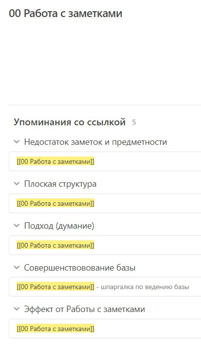 Результат! В заметке "00 Бизнес" в разделе "Упоминания со ссылкой" показаны все ваши заметки про бизнес