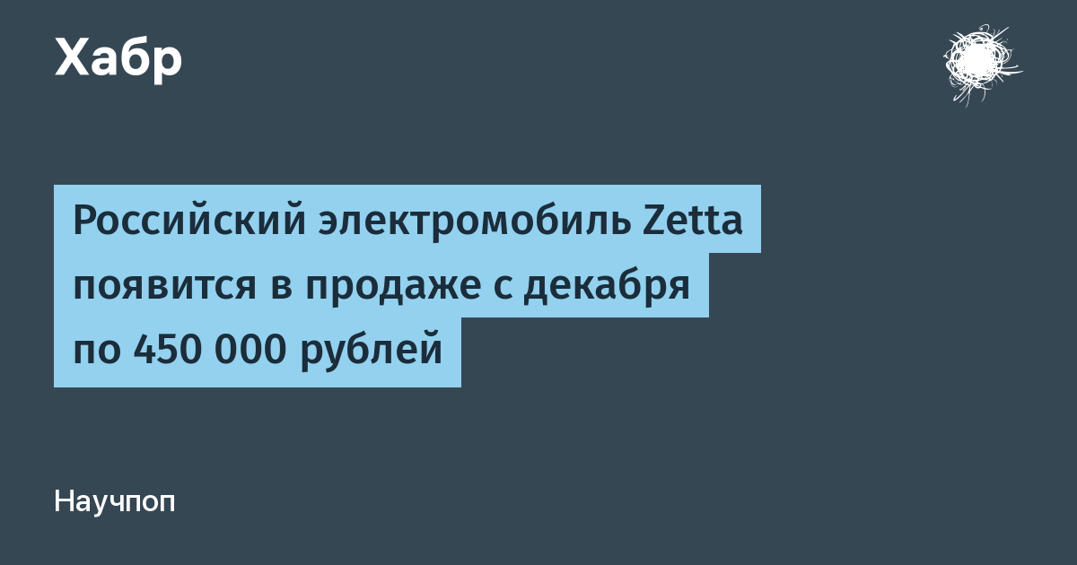 Гендиректор компании Zetta, к.т.н. Денис Щуровский огласил стоимость бюджетного российского электромобиля. Базовая комплектация с батареей на 200 километров хода и передним приводом будет стоить 450 000 рублей, то есть около 7000 долларов по текущему курсу.