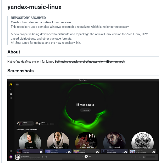 В конце октября 2025 года сервис «Яндекс Музыка» представил официальное десктопное приложение для прослушивания музыки на платформе Linux.