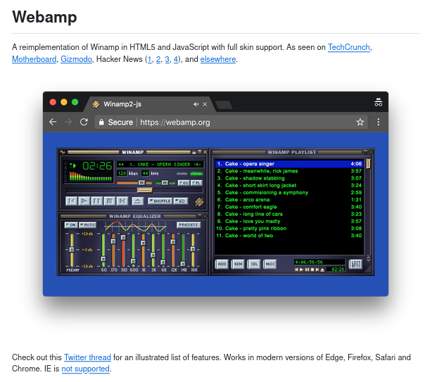 Ранее разработчик Максим Чингин (GitHub, Sourceforge, @UmnikSystem) выпустил открытый проект Yaamp. Это клон классического Winamp 2.91 (WebAmp) + «Яндекс Музыка» (используется yandex‑music‑api, yandex‑music‑open‑api). Приложение Yaamp доступно для Windows, MacOS и Linux. Код проекта написан на JavaScript, исходные коды проекта выложены под открытой лицензией MIT.