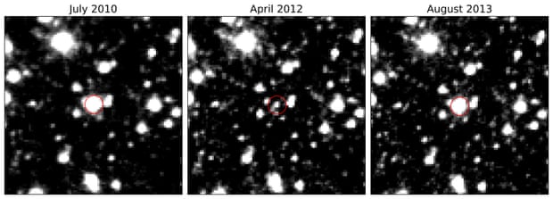 По словам доктора Лей Смит из Астрономического института при Кембриджском университете, казалось, что эта звезда появилась из ниоткуда. В начале 2012 года астрономы заметили, что звезда постепенно тускнеет, к апрелю она почти исчезла, а в последовавшие 100 дней вновь появилась.