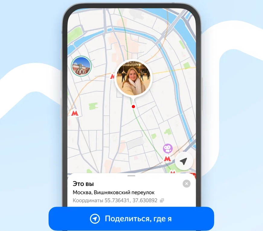 Функция «поделиться геопозицией» доступна авторизованным пользователям «Яндекса» в моби��ьном приложении «Яндекс Карт» на iOS и Android.