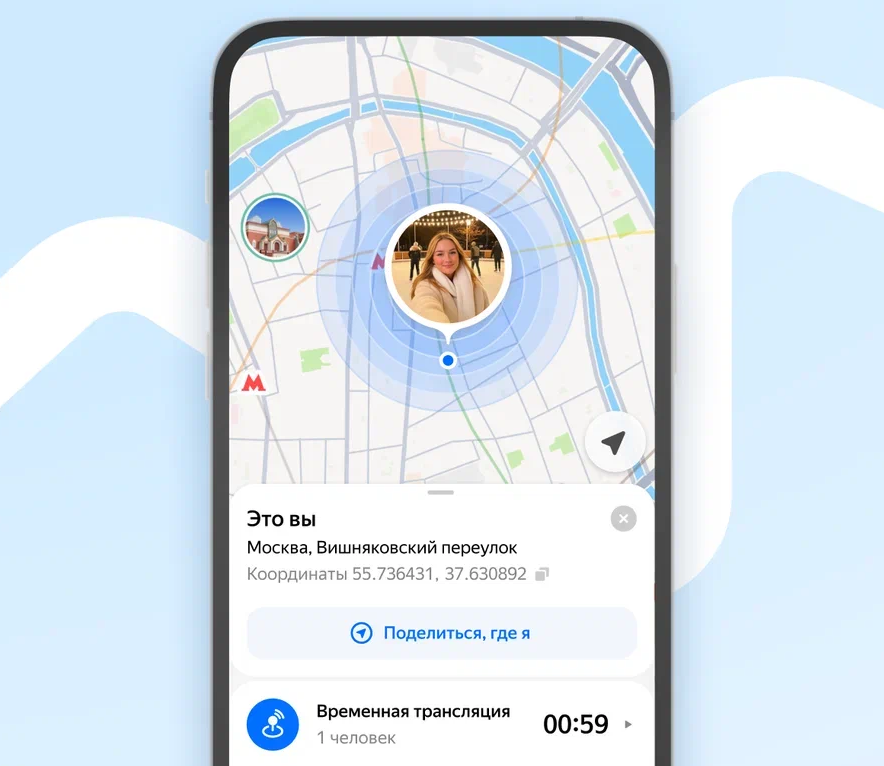 Пользователи могут выбирать, на какой срок включить трансляцию своей геопозиции. Например, на 15 минут или час, чтобы встретиться в новом месте или пересечься с близким человеком, который уже гуляет по городу. Можно делиться геопозицией на восемь часов или сутки, например, чтобы не потерять друг друга на мероприятии или в путешествии. Кроме того, можно включить постоянную трансляцию — так близкие будут всё время видеть местоположение пользователя на карте.