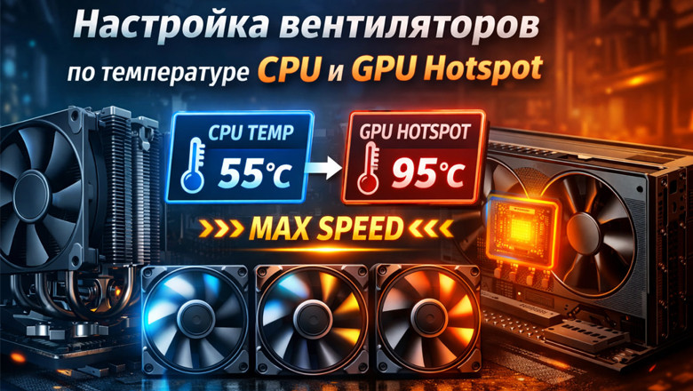 В этой статье подробно рассмотрим настройку FanControl, при которой корпусные вентиляторы учитывают температуру CPU и GPU Hotspot и автоматически выбирают обороты, ориентируясь на самый горячий компонент.