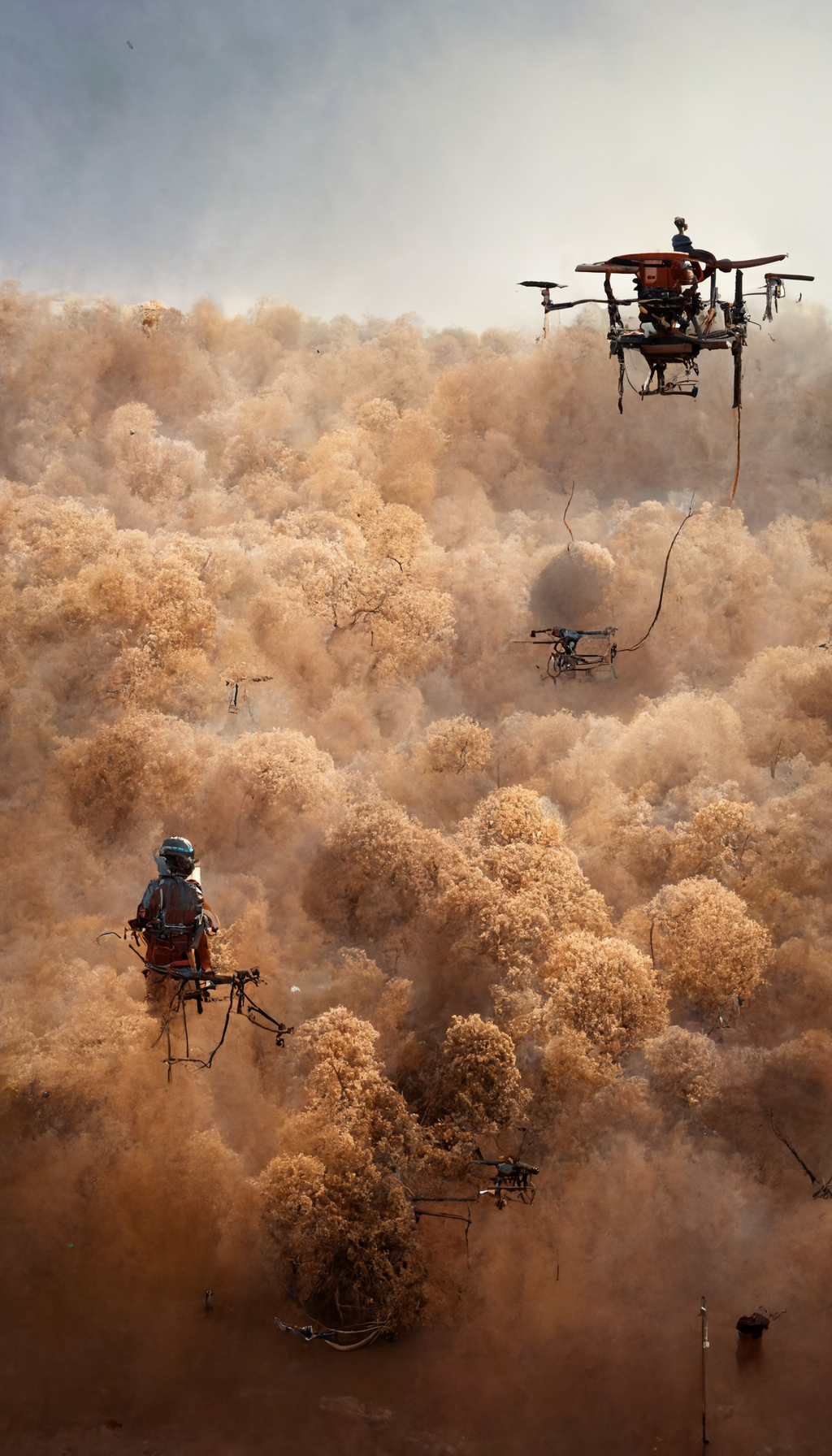 Майк обошел вышку, положил рюкзак у шлюза и пополз по лестнице вверх. Карабин по обычаю пристегнул к штанине, чтобы не мешался. Видимость была порядка 50 метров, но жара наверху показалась невыносимой. Посмотрев на болты креплений антенн навигационной системы Майк хотел уже спустится. Где то вдалеке блеснули искры и из потока кувырком вылетел кусок дрона. В гуле все одинаково монотонно, меняется только картинка. Присмотревшись к завихрению можно было увидеть искривление движения медленных дронов в нижнем коридоре.