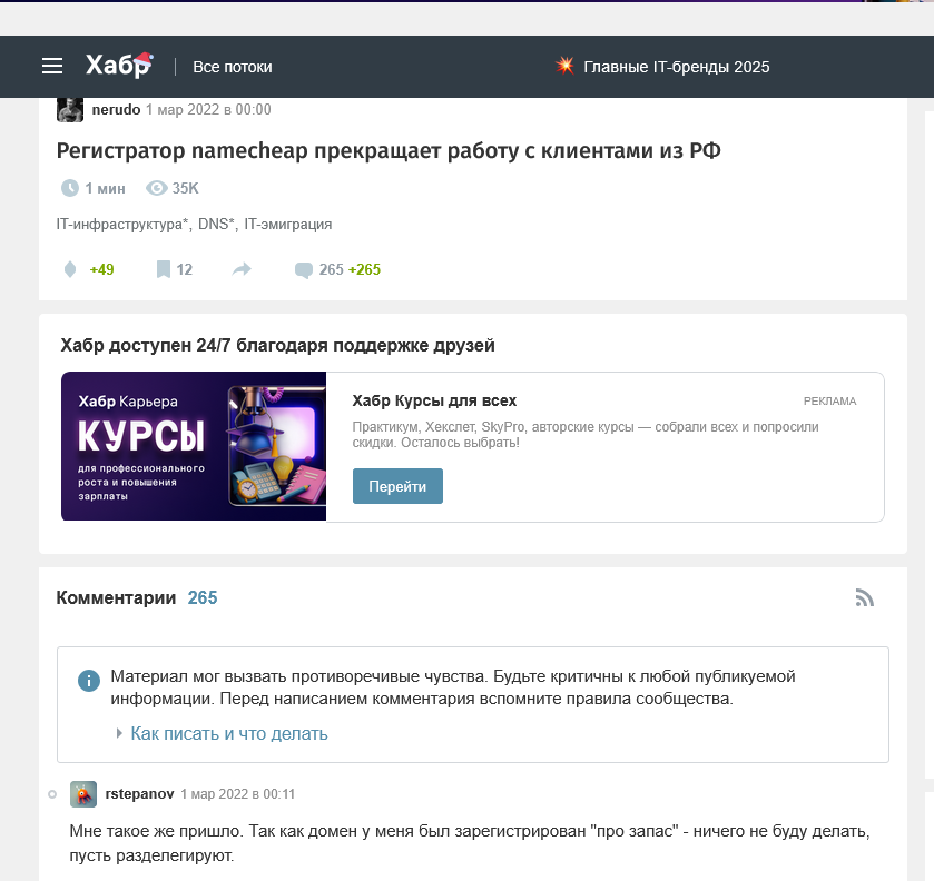 Я надеюсь Exler оформил свой домен испанский в namecheap не на российский паспорт ))