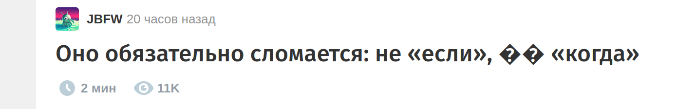 У меня иногда всё ок, а иногда вот эти вопросы появляются. Это явно не к статье вопрос. Возможно где-то на фронте периодически бьется UTF-8